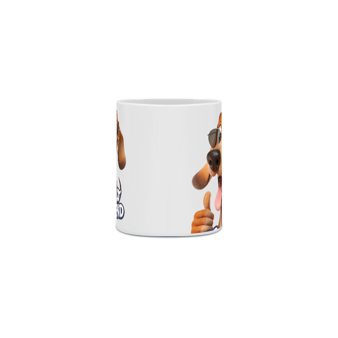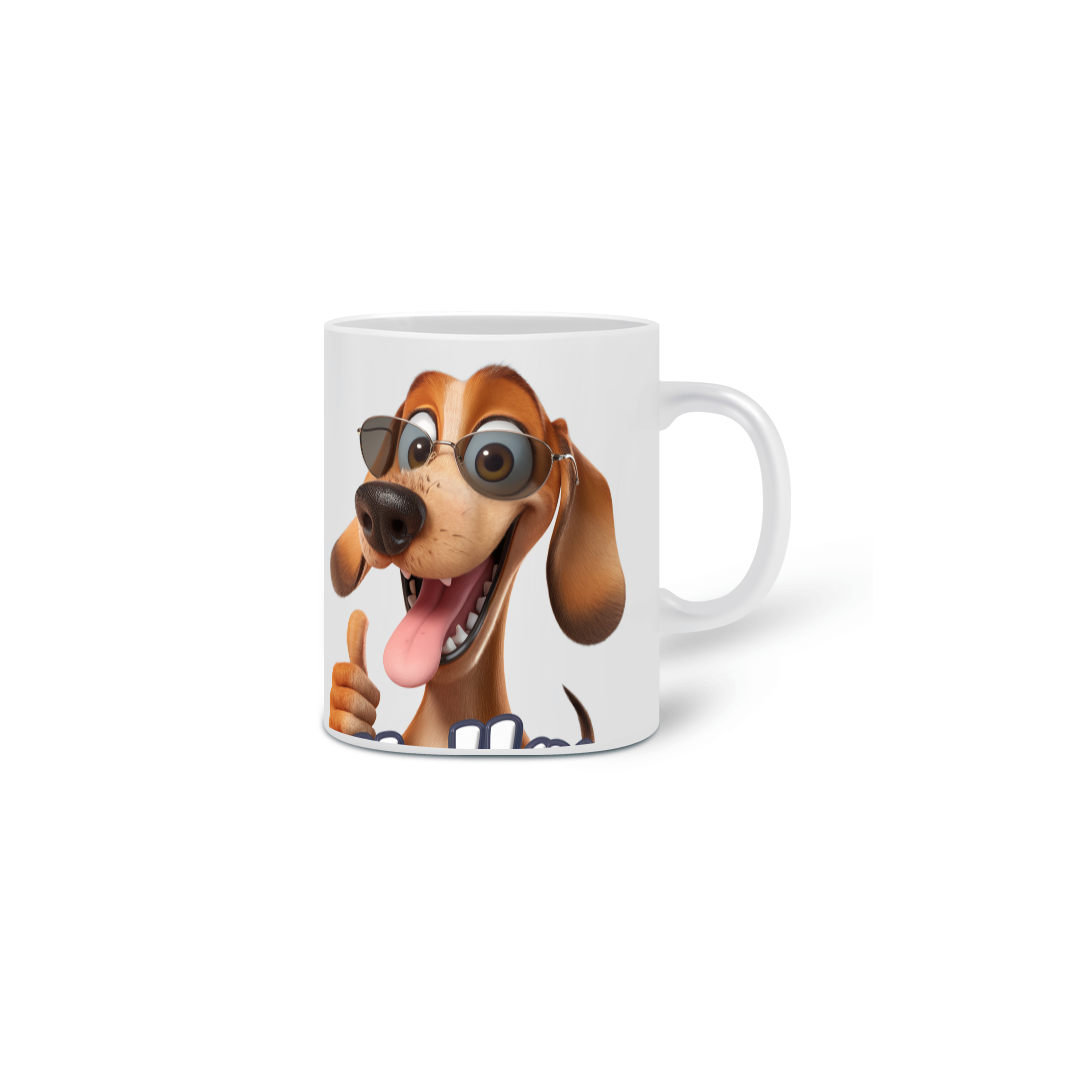 Caneca Cerâmica Branca Estampa Cão Óculos