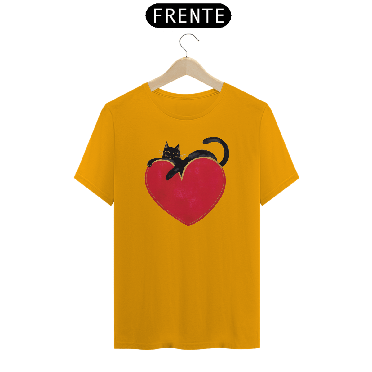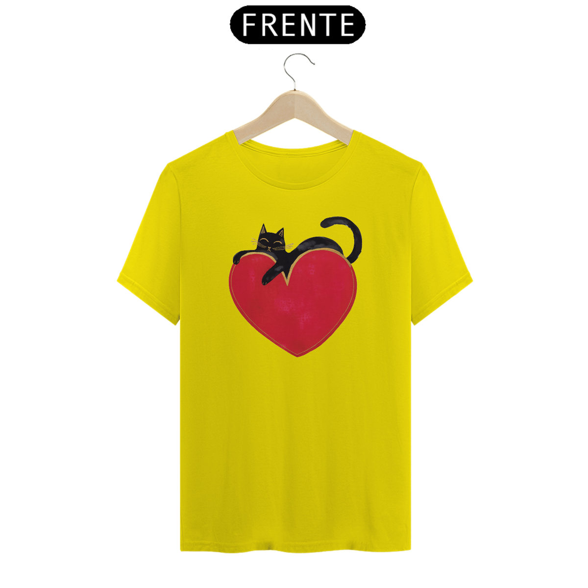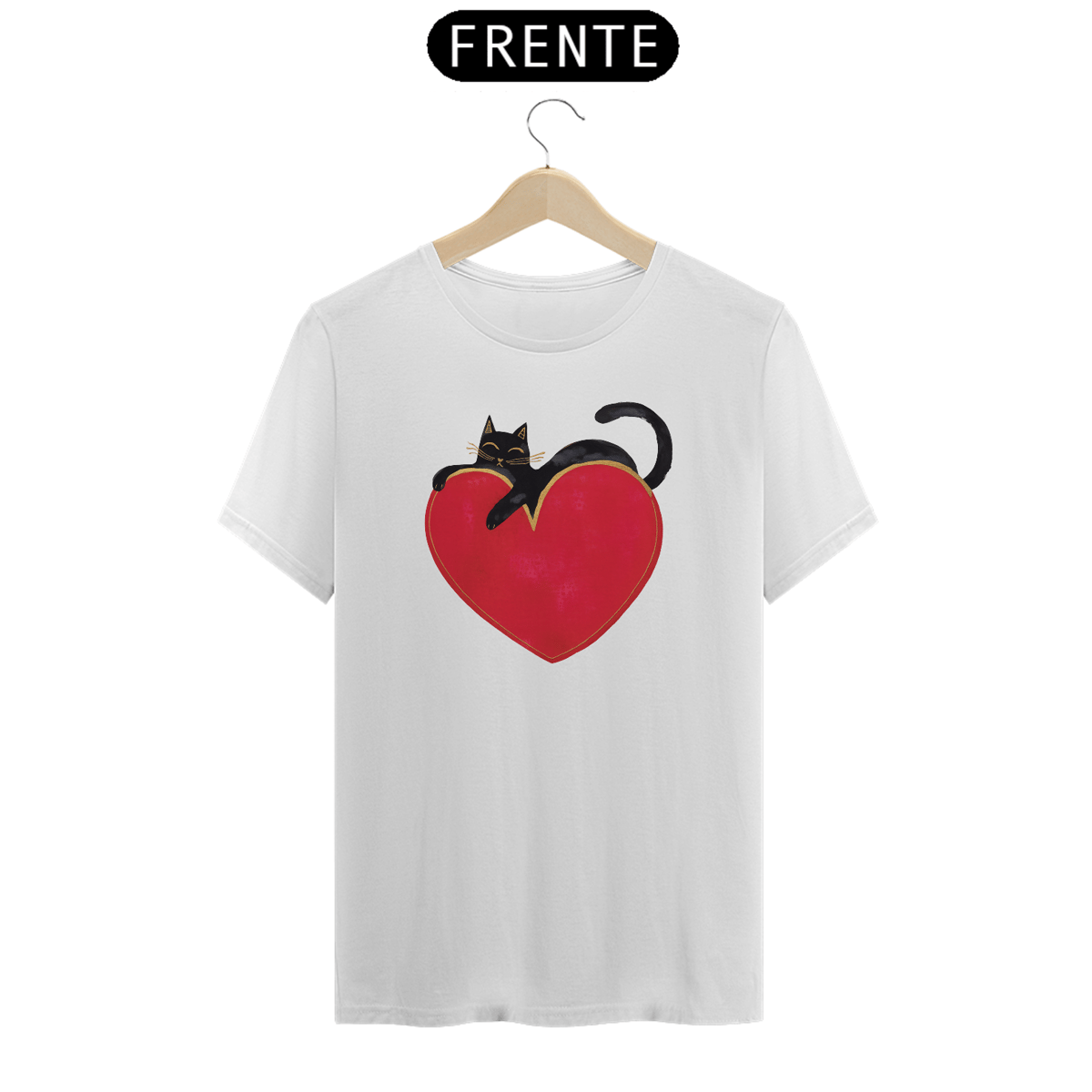 Gato preto sobre um coracao